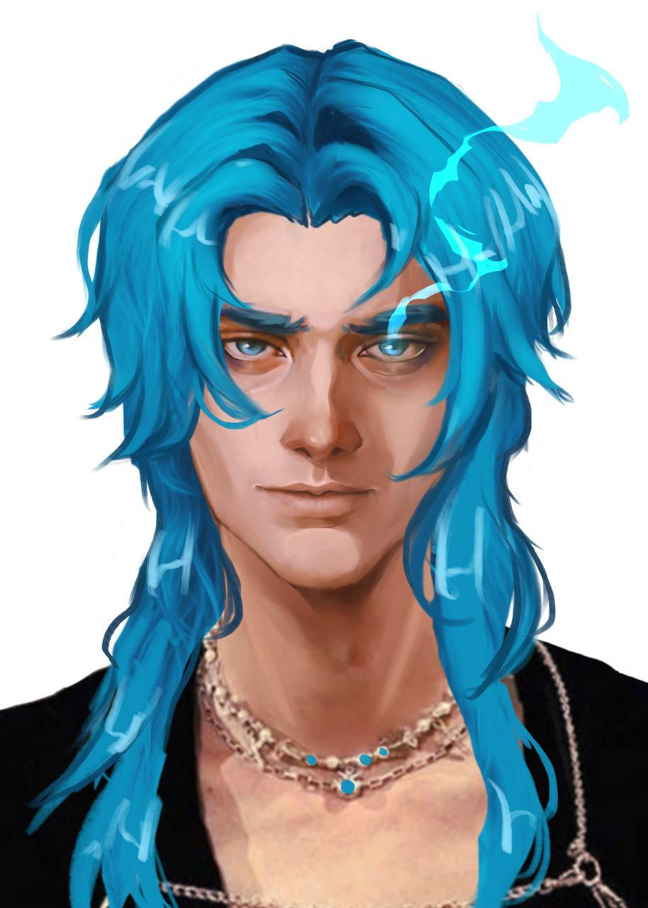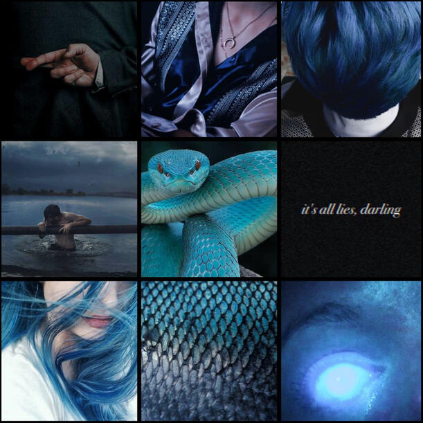 Snake is a fallen god who used to be very good at manipulating people and getting what he wanted. He killed the Blue Dragon and put on its hide, which fused with him and broke most of his divine powers.His ability is shapeshifting: he can become male or female, old or young, any face or form — but his hair is always bright blue.