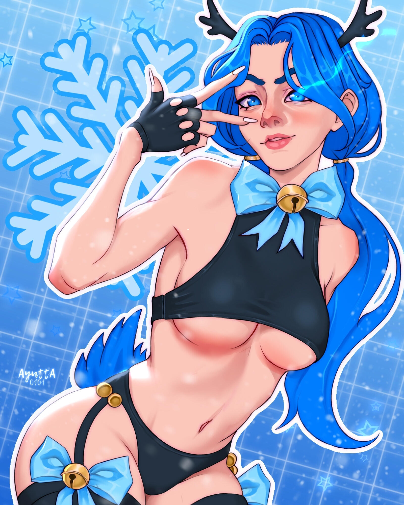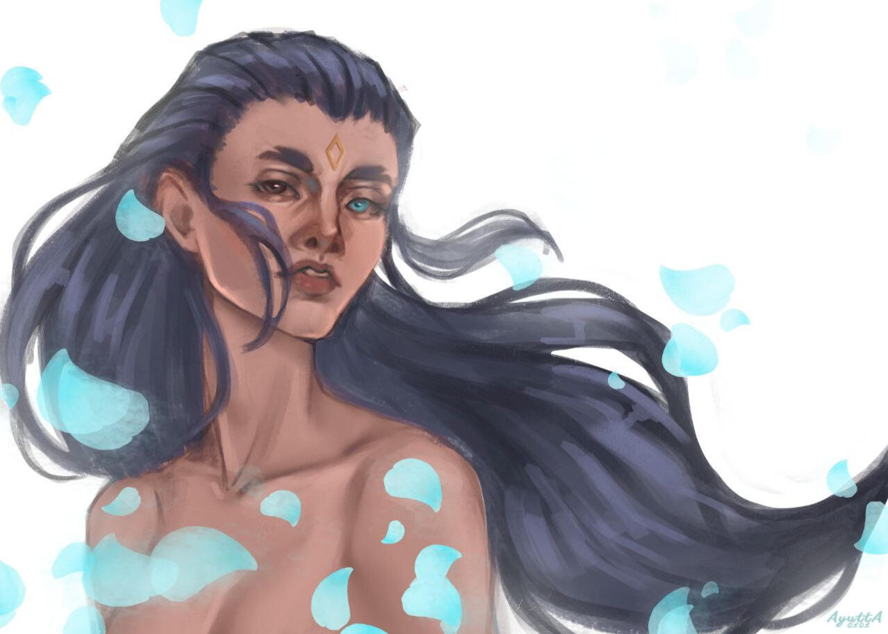 Distinguishing features: Can shapeshift at will, but the blue hair and eyes always stay